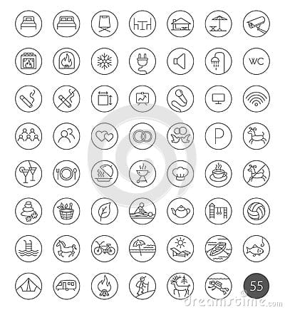Set of 55 travel hotel line icons